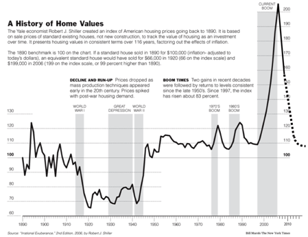 So do I think Obama's plan to "stabilize" housing prices will work? I do not. The decline in house prices is a freight train that would take trillions of dollars to stop. Until the housing market bottoms, probably not until sometime in late 2010 or 2011, we will continue to have uncertainty surrounding the value of assets on bank balance sheets. While there is uncertainty on bank balance sheets, there will continue to be an underlying deflationary tug on the economy.